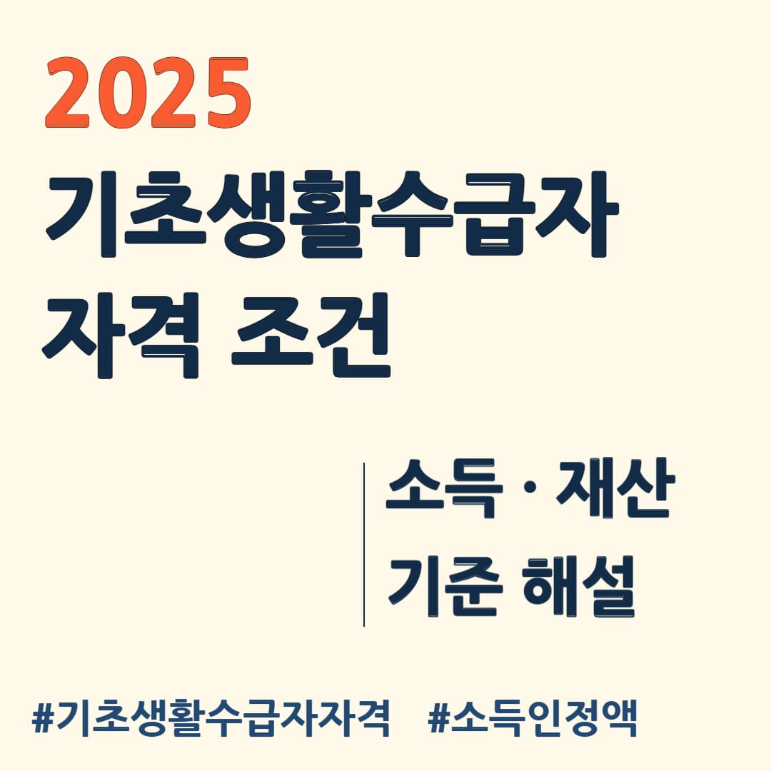 🎯 이번 글에서는 2025년 기초생활수급자 자격 조건을 중심으로 소득인정액 계산법, 중위소득 기준표, 재산 기준과 부양의무자 기준까지 핵심 내용을 정리했습니다.